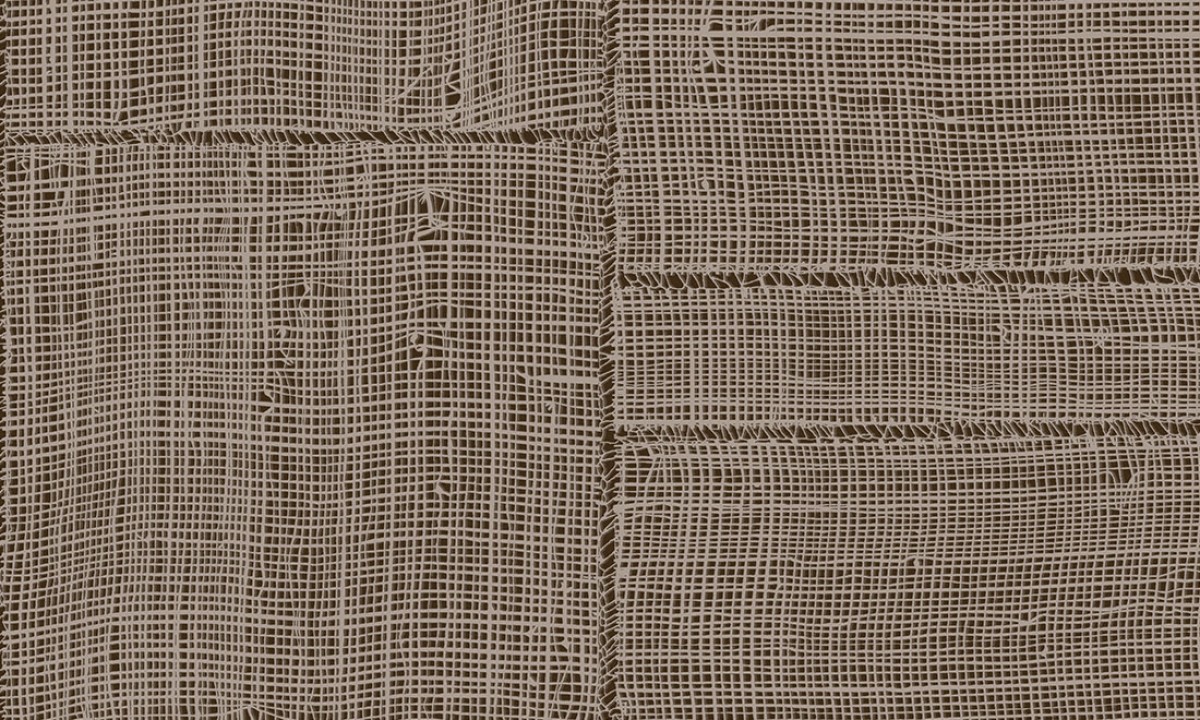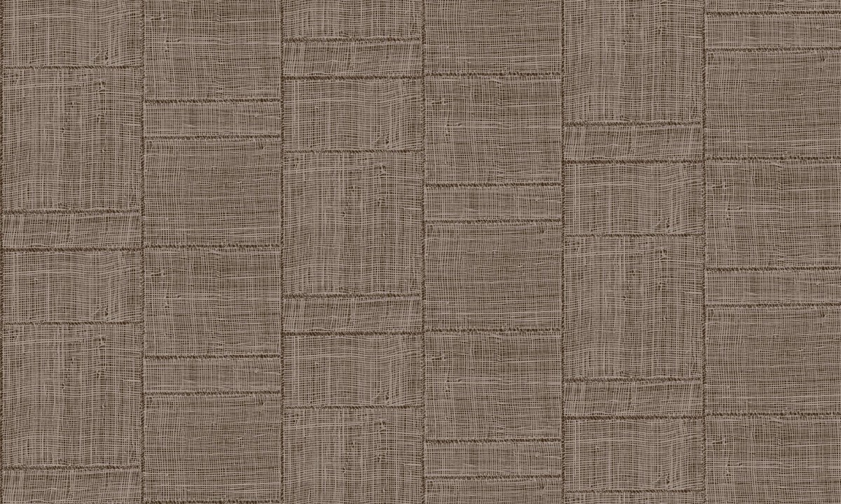 Geïnspireerd op handgeweven, open raffia patchwork waarbij de vlakken van verschillende groottes aan elkaar zijn gestikt. De natuurlijke beweging van het losse weefsel karakteriseert het patroon. De oneffen draden variëren in dikte waardoor schaduw en diepte tevoorschijn komen.