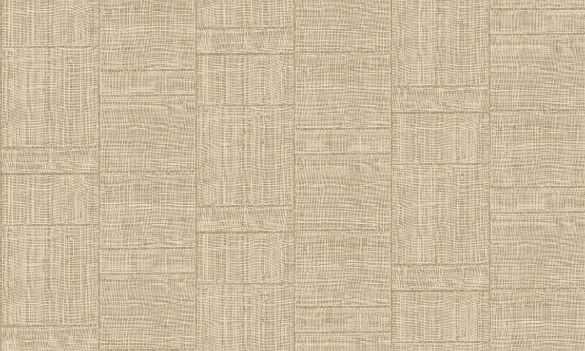 Geïnspireerd op handgeweven, open raffia patchwork waarbij de vlakken van verschillende groottes aan elkaar zijn gestikt. De natuurlijke beweging van het losse weefsel karakteriseert het patroon. De oneffen draden variëren in dikte waardoor schaduw en diepte tevoorschijn komen.