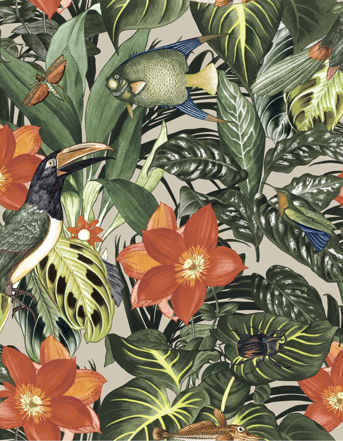 Eilanden in de zon waar kleuren samenkomen. Een overvloed aan tropische vogels, bloemen en onderwater taferelen brengen dat speciale Caribische gevoel in uw huis.