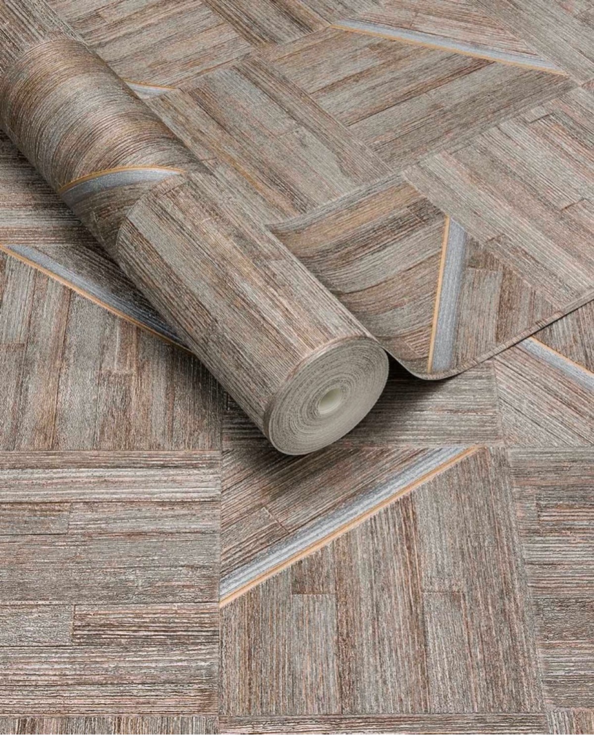 Laat je betoveren door het subtiele spel van lijnen en vormen. Een ingenieus patroon combineert horizontale en verticale schorsstructuren tot een harmonieus dambord, verrijkt met contrasterende inzetstukken die diepte en karakter brengen aan je wand. De blikvanger? Een indrukwekkend varen dessin, in reliëf ingelegd op een houtlook ondergrond alsof het blad met zorg in het oppervlak is gebeiteld, tastbaar en levendig. Voor wie houdt van tijdloze elegantie, is er een moderne chevron met de structuur van bamboe. Verticale lijnen wisselen zich af met fijn ingelegde geometrie, waardoor een verfijnd ritme ontstaat.