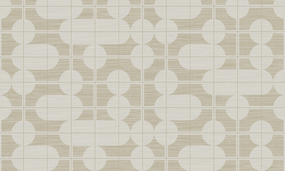 Een tekening geïnspireerd op de sterk opkomende trend van meubels en decoraties met elegante, glooiende lijnen en uitgesproken ronde vormen. De cirkels contrasteren mooi met het subtiele, geometrische rasterpatroon.
