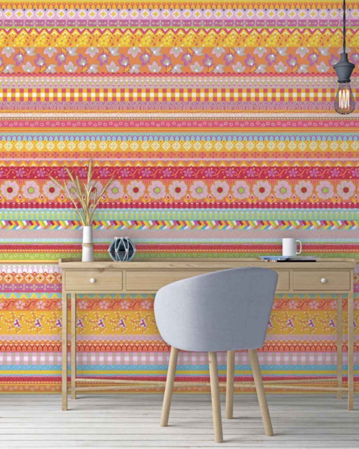 Deze collectie Happy Living zorgt voor een vrolijke uitstraling in uw interieur. Dit kleurrijke behang met bloemenpatronen is dan ook perfect om een saai interieur wat meer leven in te blazen. Ook staat dit behang prachtig in de kinderkamer.