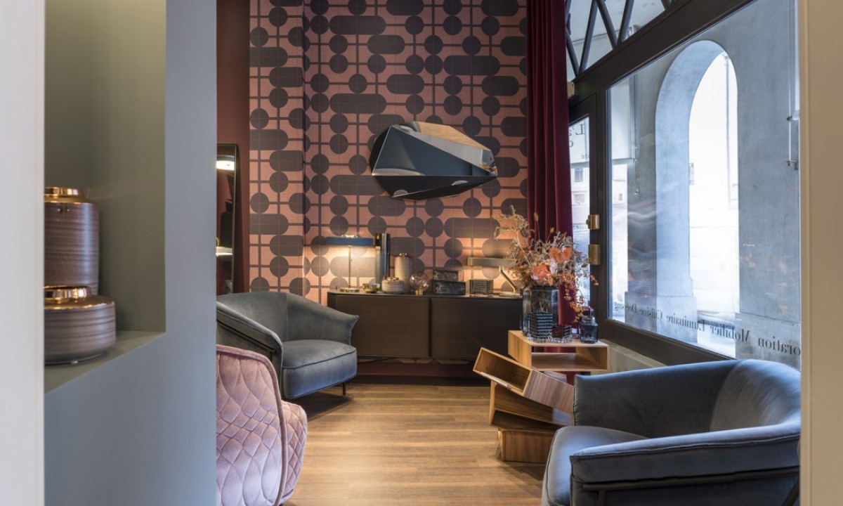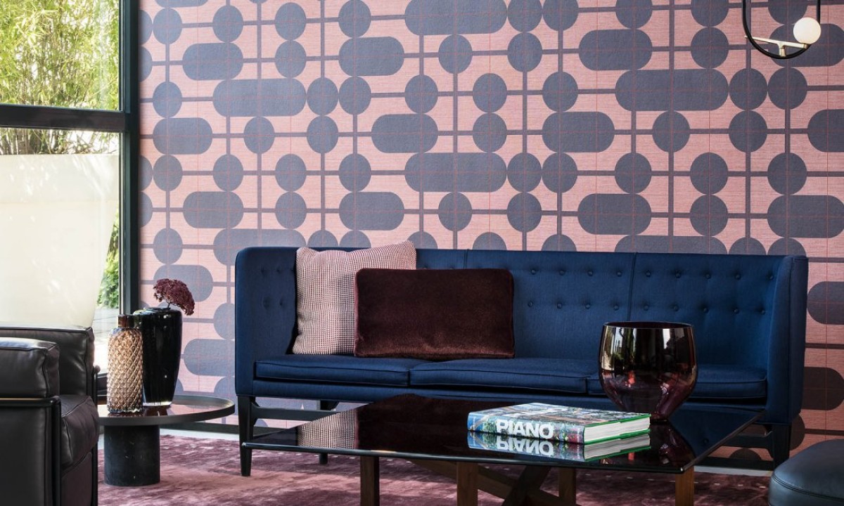 A design made on the plain with natural sisal look. It is inspired by the rapidly-growing trend of furniture and decoration with elegant, glowing lines and pronounced round shapes. The circles contrast beautifully with the subtle, geometric grid pattern.