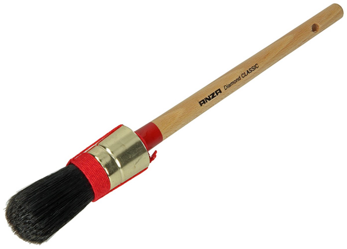 Is vervaardigd met een uitgekiende mix van zwart varkensharen synthetische vezels, met touwwoeling en geverniste beukensteel. De kop is vol-gekit met 2-componentenmateriaal om insijpelen uit te sluiten. De kwast is zeer functioneel en van hoogwaardige kwaliteit. Geschikt voor lakken op alkydbasis en alle producten op terpetinebasis.