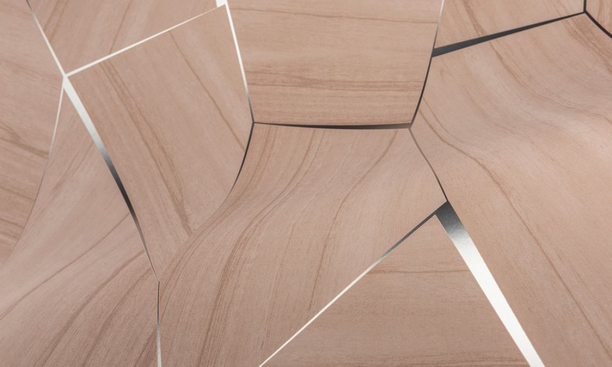SectionSection is een print van exotisch notenhout met uitgesproken nerven, ingelegd in onregelmatige vorm. De glanzende lijnen van edelmetaal contrasteren met de grote vlakken van het patchwork. Hout is een edel natuurproduct dat altijd warm aanvoelt, duurzaam is en zeer decoratief.