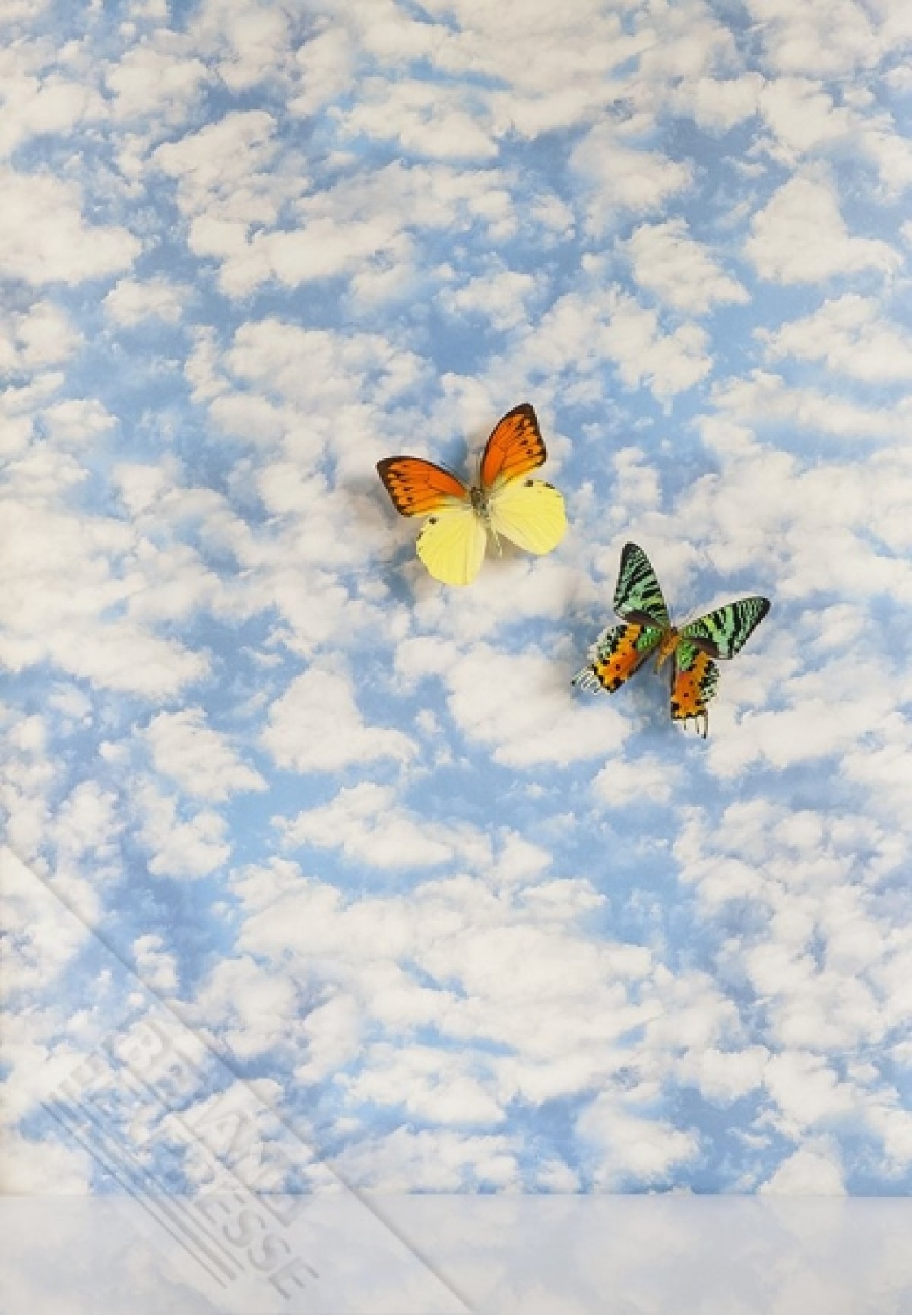 Vlinders zijn als decoratie en zitten niet echt in het behang.