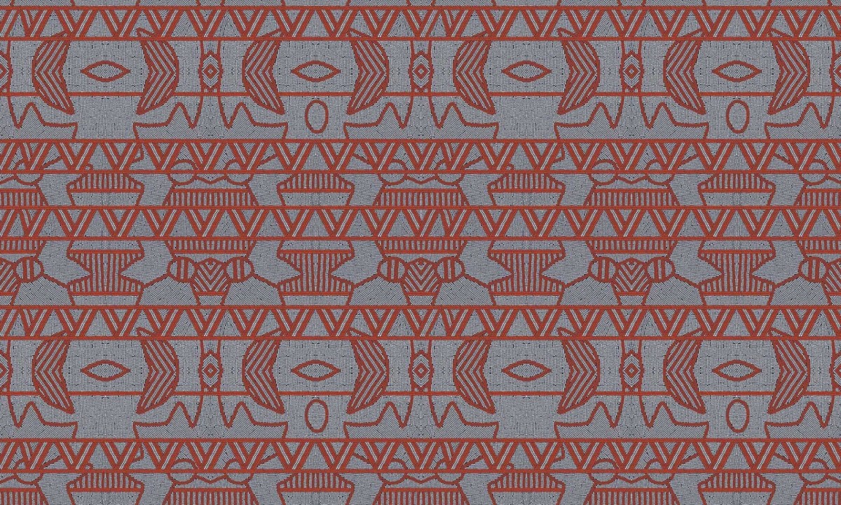 Hetzelfde ‘quillwork’ als Civilia, maar dan met een uitgesproken motief. Het is precies gemaakt zoals de Paleo Indianen het al deden, gestileerde figuren uitgekerfd in hout, steen of been. Uit opgravingen weten we ook dat ze dol waren op gekleurde materialen zoals koraal, turkoois en jade, tinten die je ook in deze collectie aantreft.